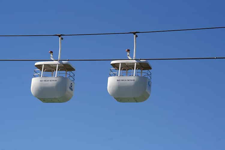 A rare sight, with the skyway running in groups of 3 gondolas rather than the usual 4.