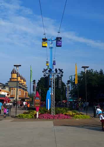 Sky Ride transports guests over the front midway, giving good views of rides like Raptor, Gatekeeper and MaXair.