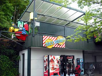 Guests board their cars from an elevated station, for a tour around the upper part of the park.