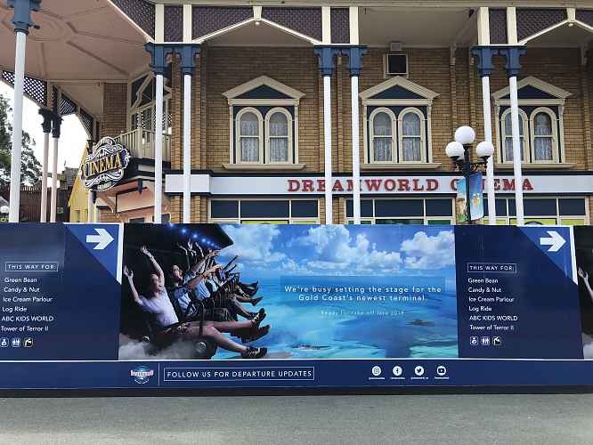 Dreamworld have created unique hordings to promote the forthcoming ride in this high traffic area of the park.