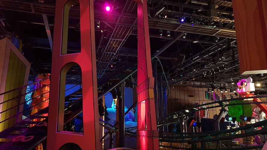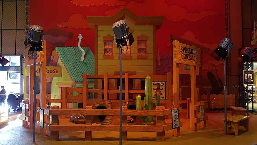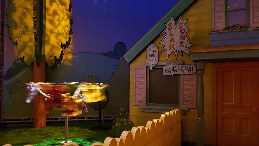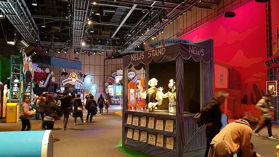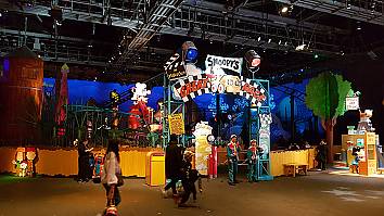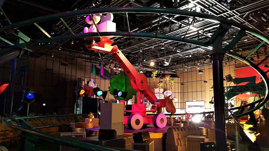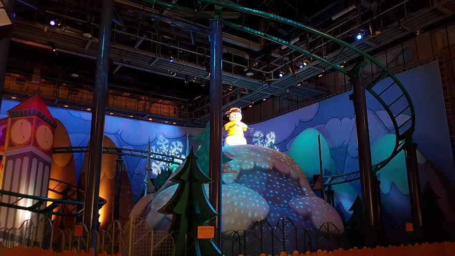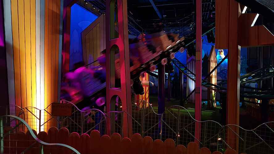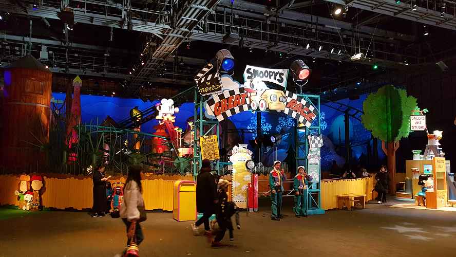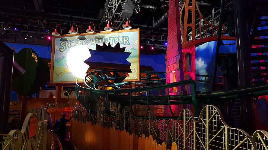 Snoopy's Great Race is an indoor coaster themed to filming a movie about a soapbox racer derby.