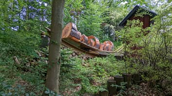 Guests ride in this log that moves back and forth along the curved track.