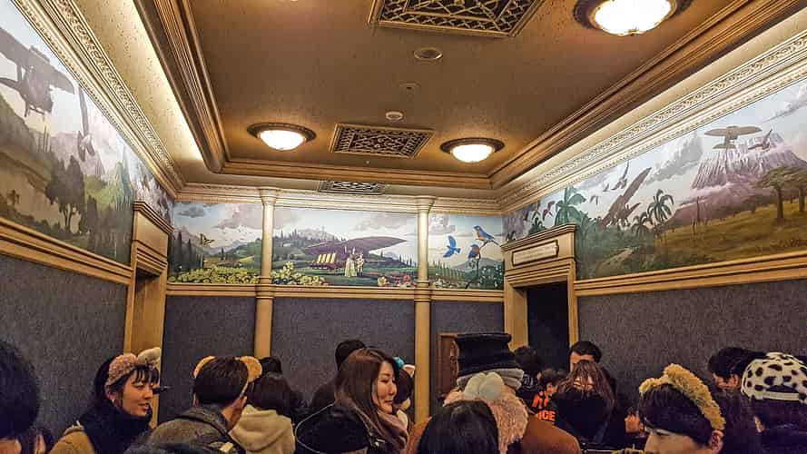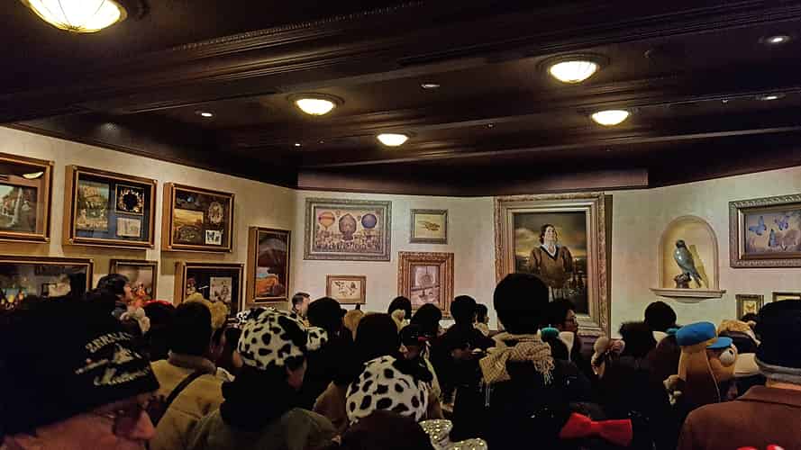 The preshow is one of the most special and unique things about this version of the ride, featuring paintings that seemingly magically come to life with depth, and elaborate projection mapping.
