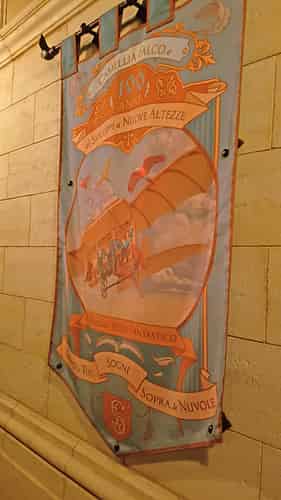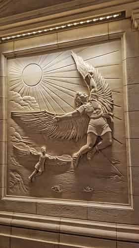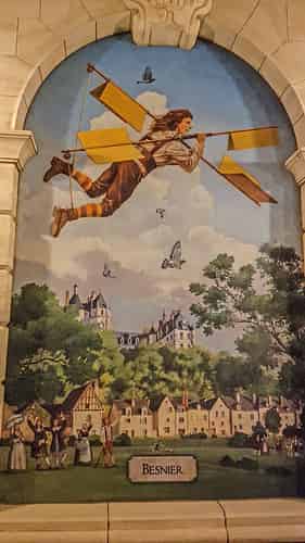 Murals illustrate great moments in a fanciful history of the development of flight.