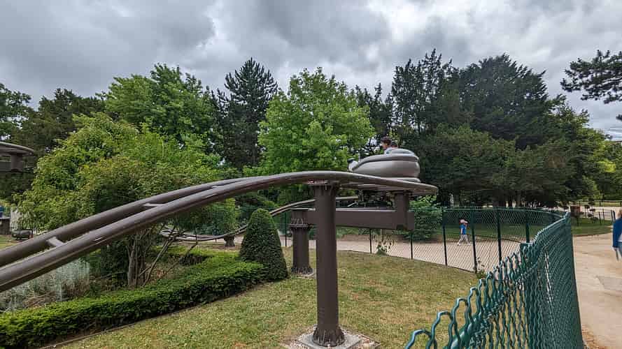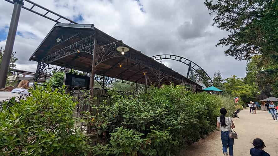 Part of the track spans over a kiosk.