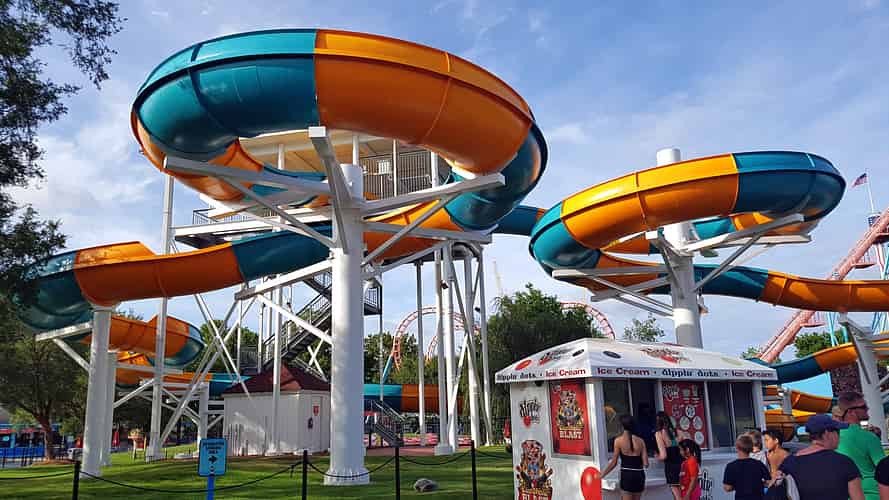 The first slide you see on the way into Carolina Harbor is the Southern Sidewinder