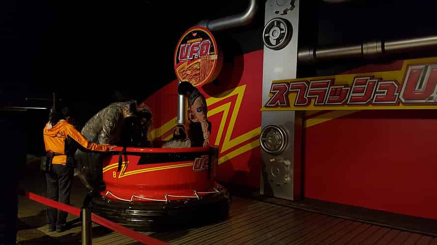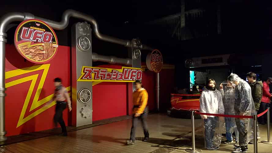 Splash U.F.O is a river rapids ride themed to an instant noodle brand of the same name.
