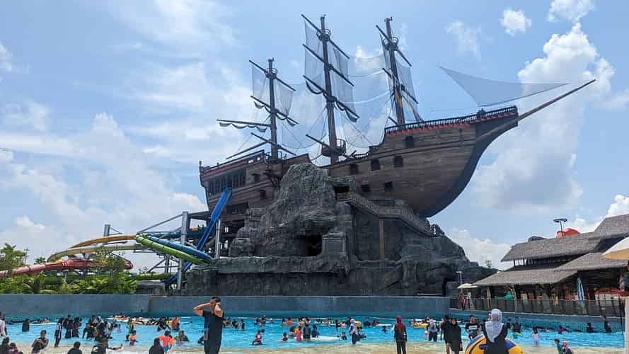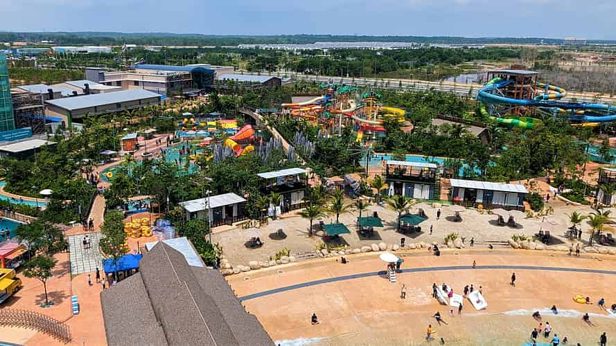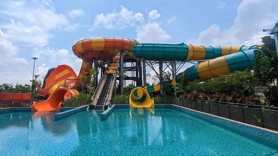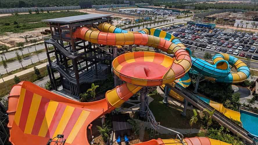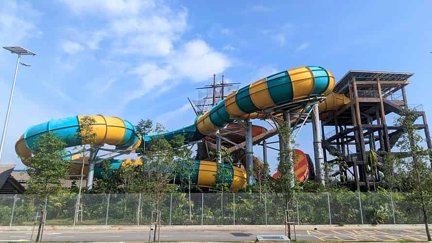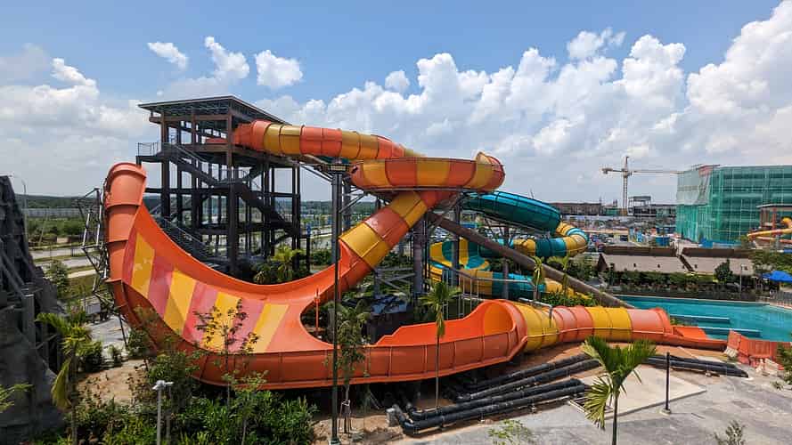 Kids attractions on the left, with the Proslide raft slide tower on the right.