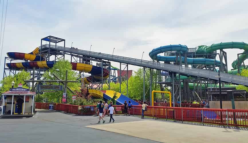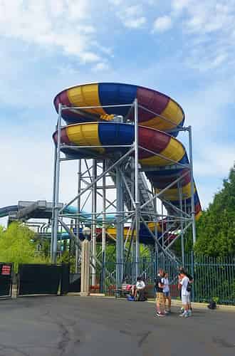 Splashwater Falls is essentially a water slide adapted to be ridden in street clothes.