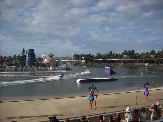 The show kicks off with fountains, bubbles, and a few fish driving boats towing jellyfish kites.