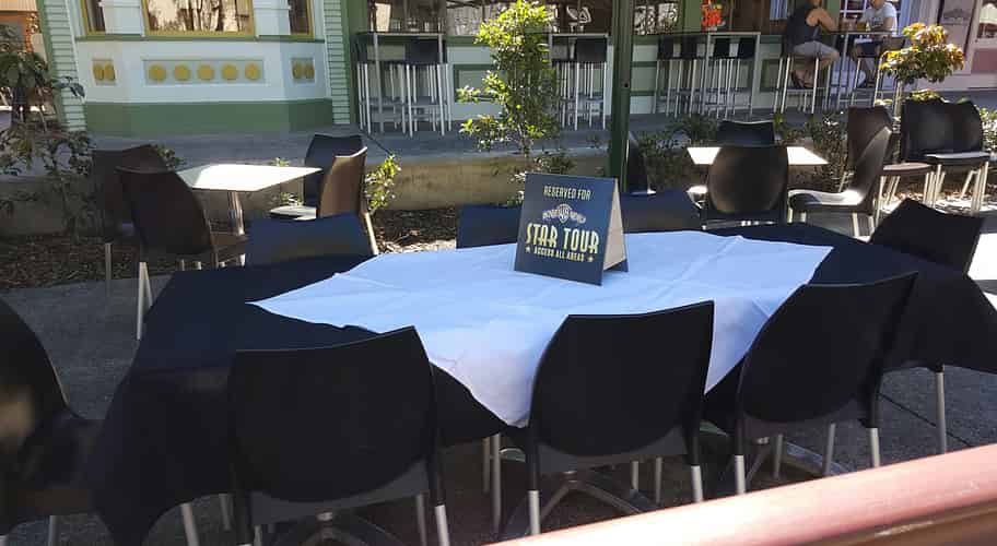 The table at Dirty Harry's awaiting Star Tour guests for lunch.