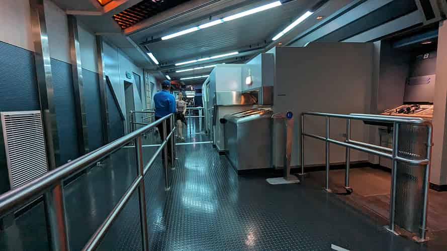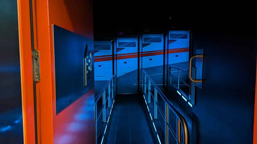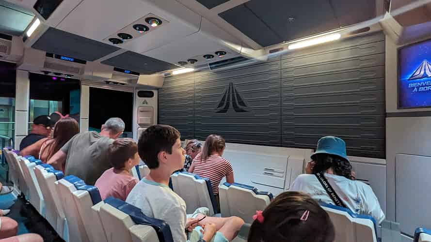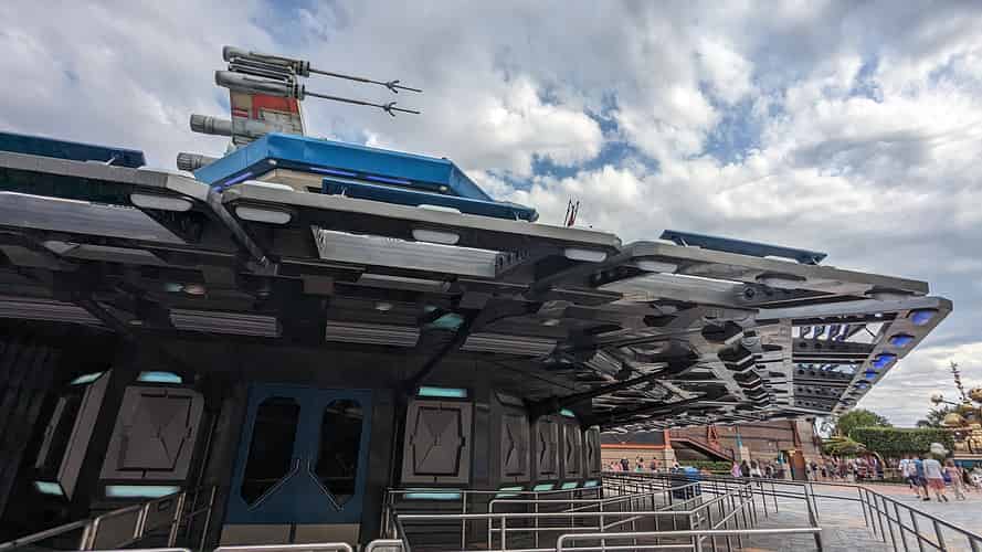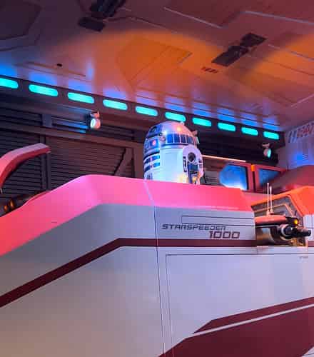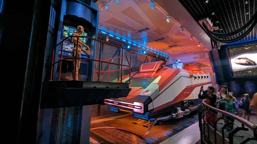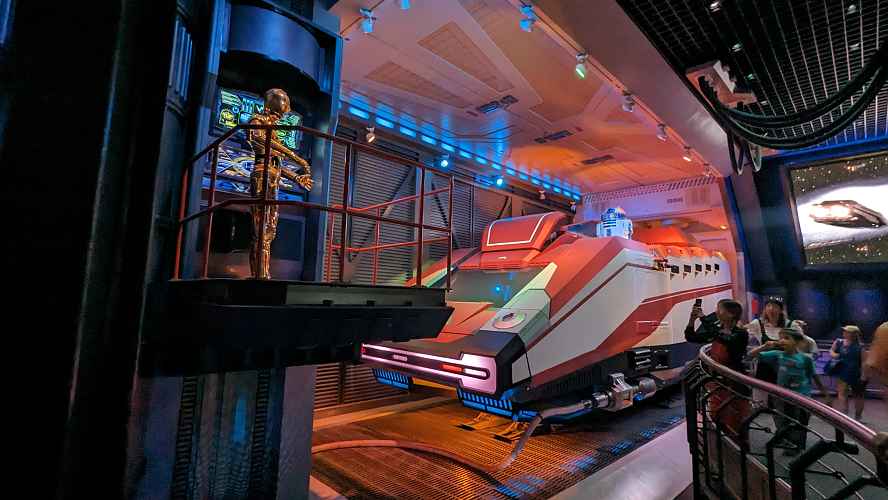 A star speeder vehicle is docked but it's not quite time to board yet.