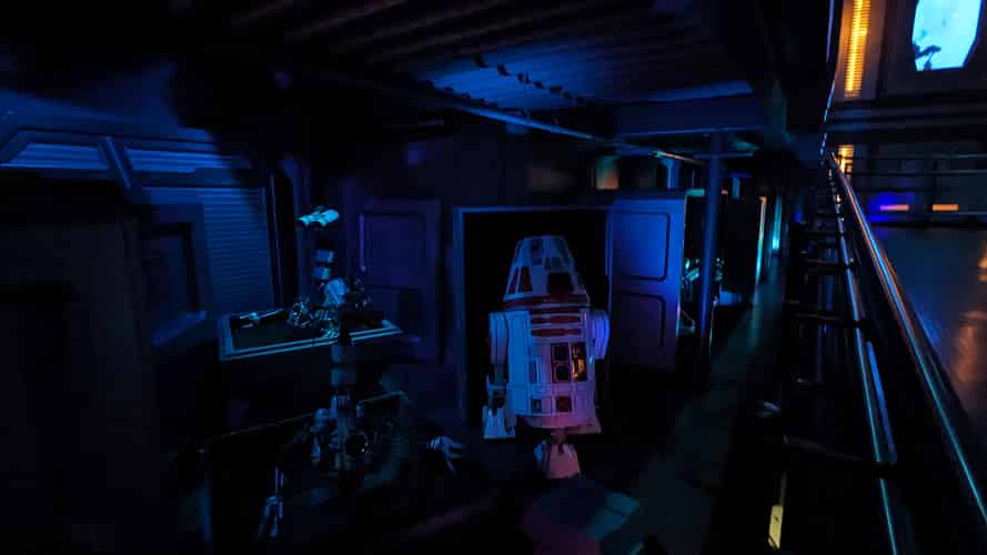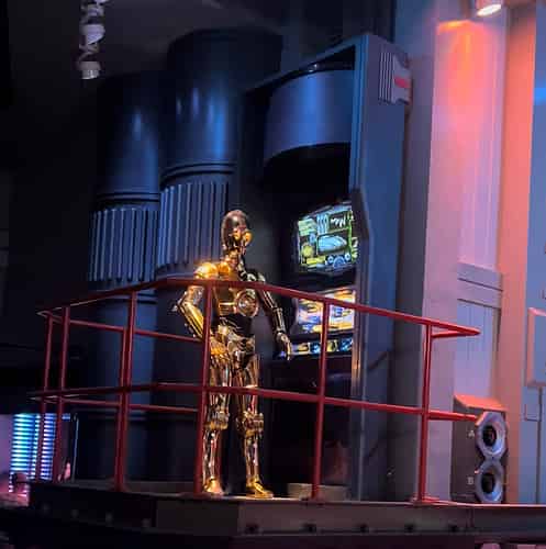 C3PO greets guests, and later on becomes your unintentional pilot.