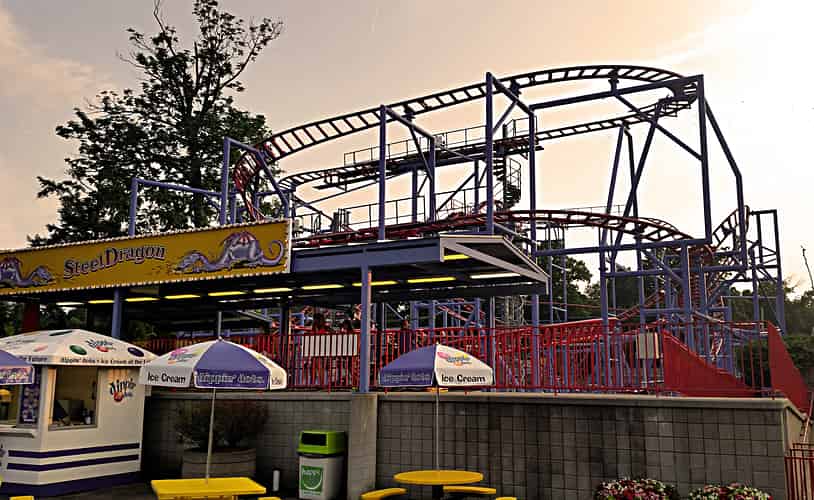 Steel Dragon is a spinning coaster with a tightly packed layout.