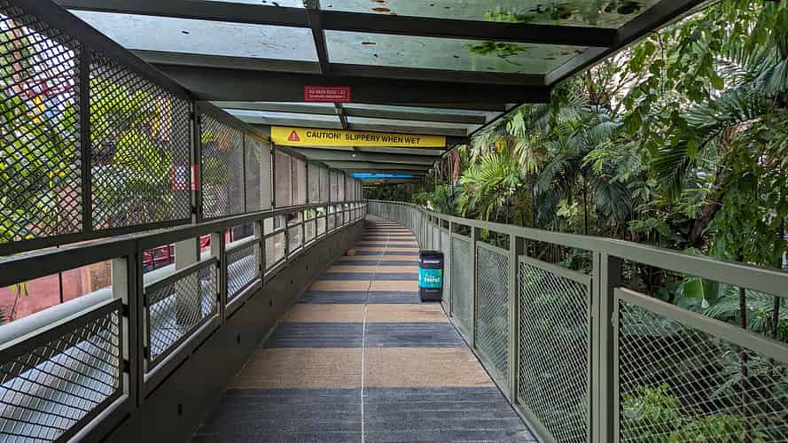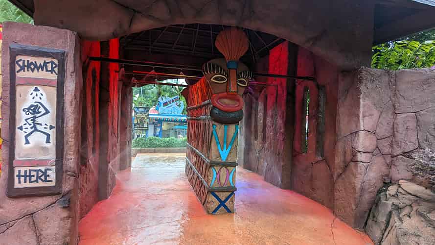 The "Main Street" of the park that links the entrance to the escalators down to the water park.