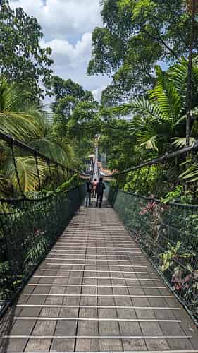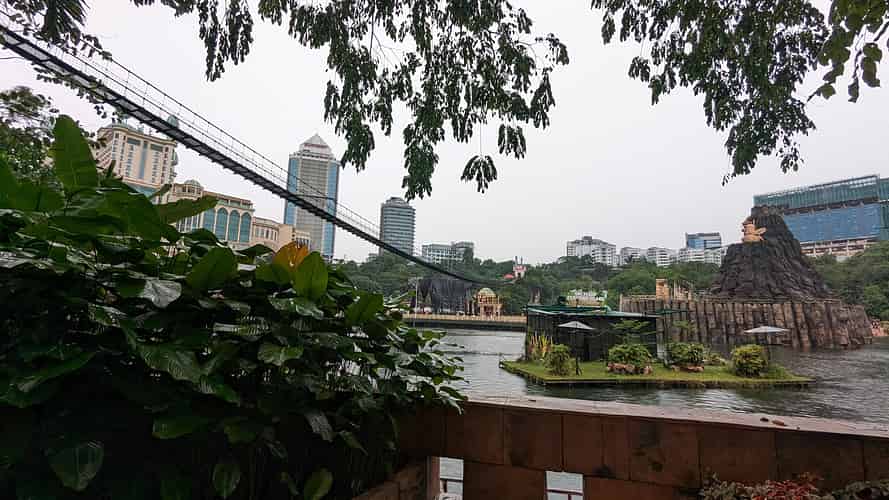 A landmark of Sunway Lagoon is a suspension bridge spanning the park.