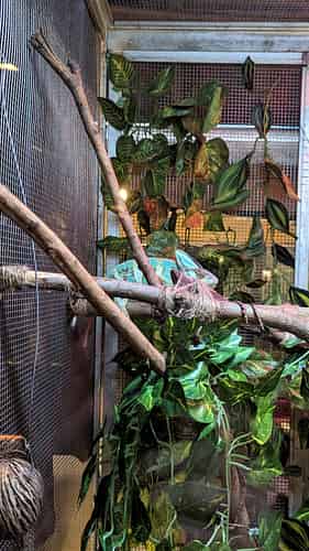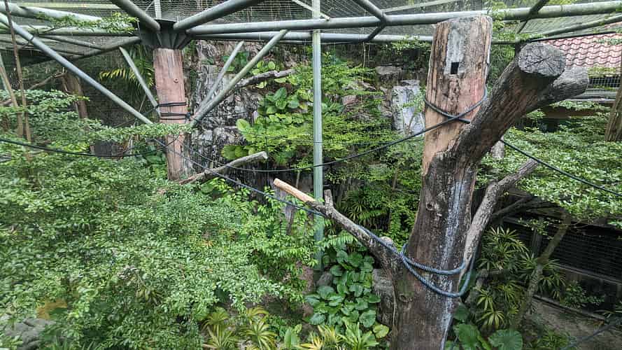 Inside the aviary.