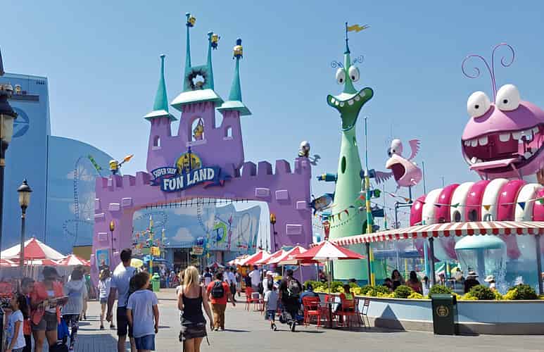 This photo was taken outside the Despicable Me simulator looking down at the entry to Super Silly Fun Land. (which is also the exit of the simulator)