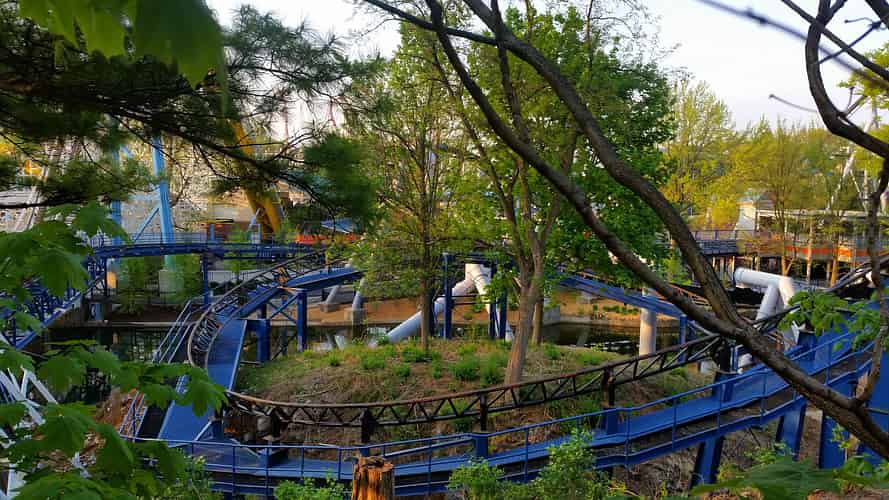 The last part of the ride is a series of turns, dips, and a helix, clinging to the bank of Spring Creek.
