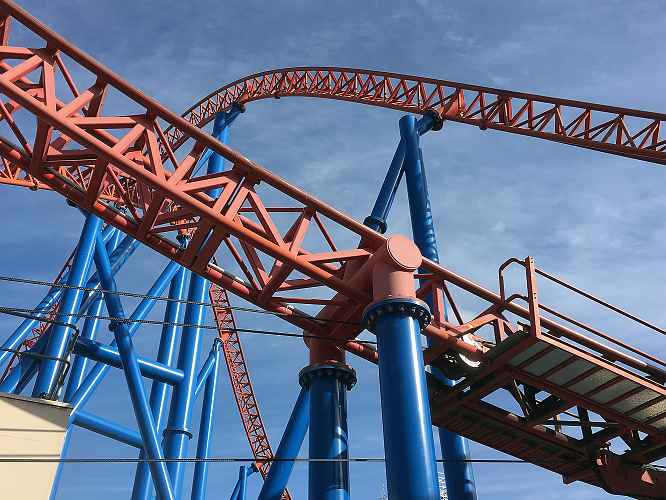 The good news is that a small section of track has been repainted during the recent maintenance period as a likely trial for a complete repaint. This is the lowest part of the track, so this work could be completed without any scaffolding or specialist equipment. Superman Escape will be closed for nearly two months from July 18 to September 14, giving a good lengthy period for such complicated work to take place.