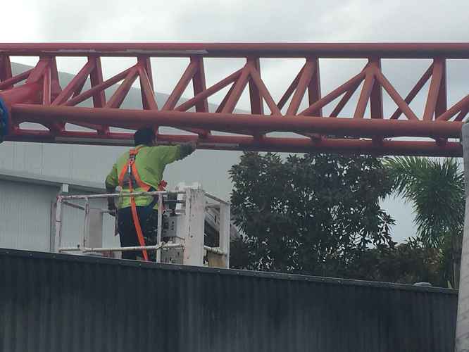 Superman Escape is being repainted by hand. Ever have to paint anything moderately tricky at home like a lattice? Imagine 760 meters of it...