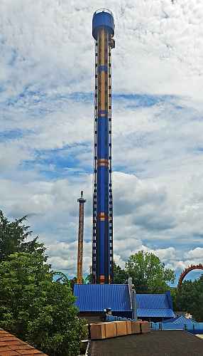 Superman Tower of Power features multiple tracks that drop four seater gondolas down from a height of 70m. A magnetic braking system brings them to a smooth stop meters from hitting the ground.
