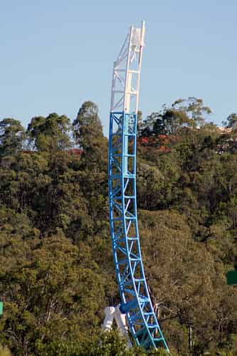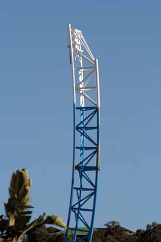 The ride uses a LIM launch system to catapult the coaster carriage back and forth along the U-shaped track.