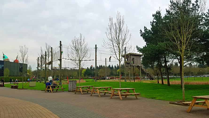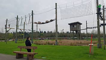 Survival Parcours is a harnessed ropes course, included in the price of admission.