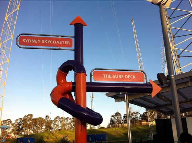 The Sydney Skycoaster is one of the tallest in the world. Guests are winched backwards close to 100m in height and released, swinging back and forth under the arch.