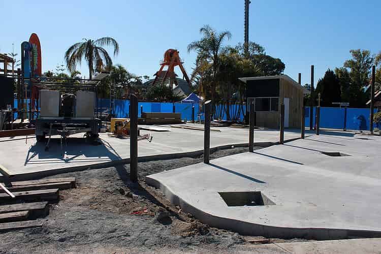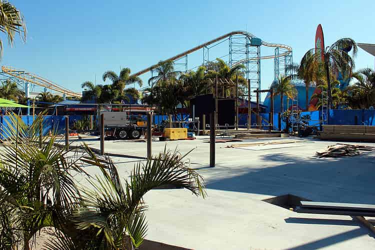 The ride loads on this side and will feature its highest point roughly over the main path, between Wipeout and the 'Snack Attack' food outlet.
