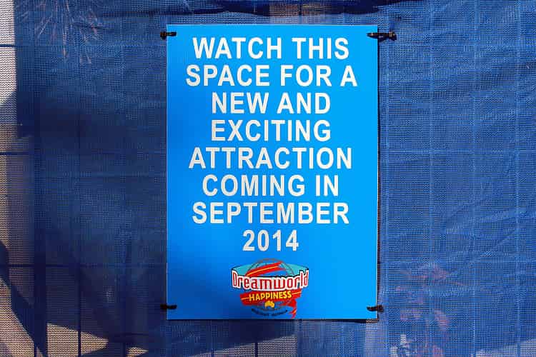 The ride has been announced, concept art unveiled and this is how Dreamworld promotes it in-park – an A3 printout. How about trying something with a bit more oomph, like this or this?