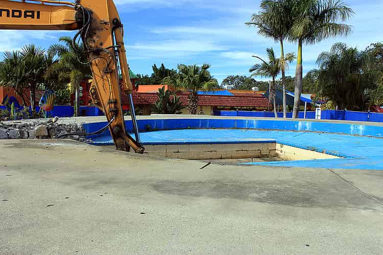 The first part of the process is clearing the remains of Reef Diver and surrounding landscaping.
