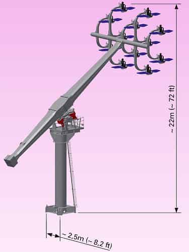 The central column sits noticeably off the centre of the site with the control booth quite close over to the left.