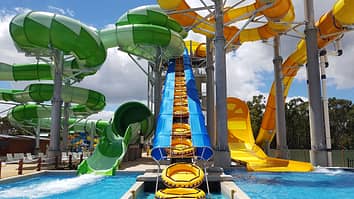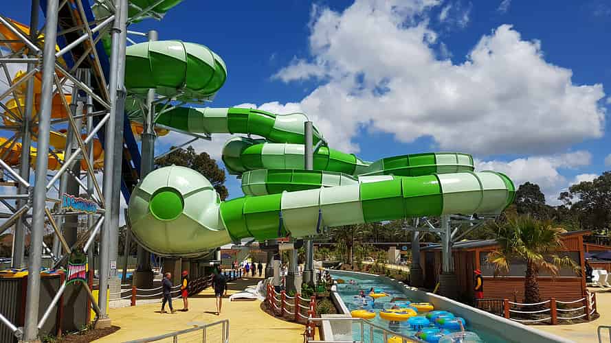The other main slide at Gumbuya World is Taipan, a combination of wide "Constrictior" spirals and a "Rattler" chamber at the end that rafts rock back and forth through