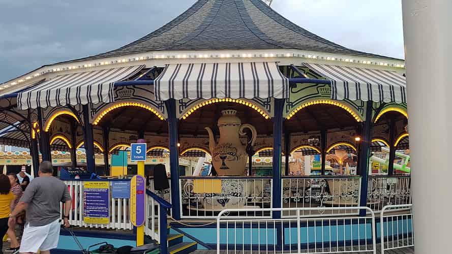 The Tea Cups sit at the entrance to Mariner's Pier.