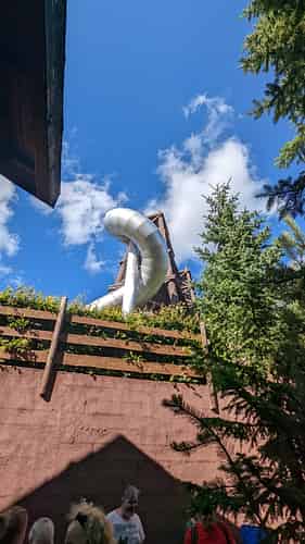 It features towering slides.