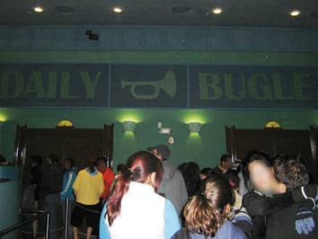 The queue starts off in the lobby of the Daily Bugle newspaper.