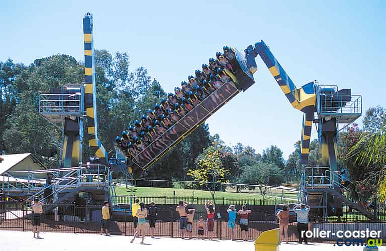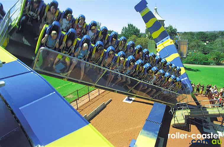 The ride is similar to Wipeout at Dreamworld, though with two rows of seats facing the same way, rather than back to back.