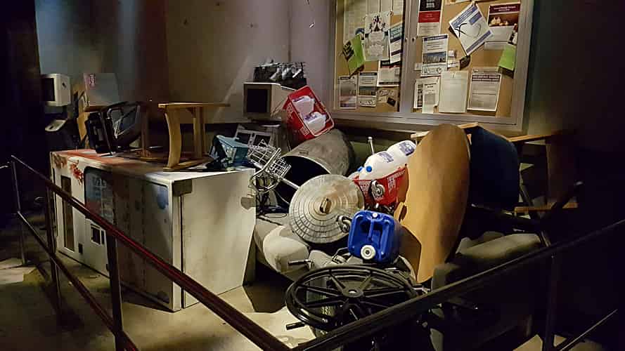 Survivors have blocked doors and created barricades with whatever equipment they could find.