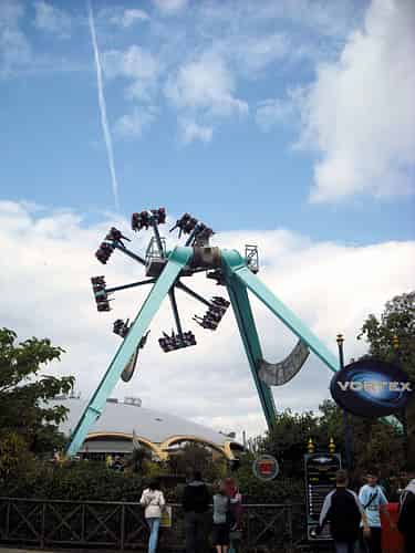 Samurai is a high intensity thrill ride. The main arm moves around in a large circle, and the sets of seats spin around like windmill, flipping individually as they go. The result is a thrilling and disorientating ride.