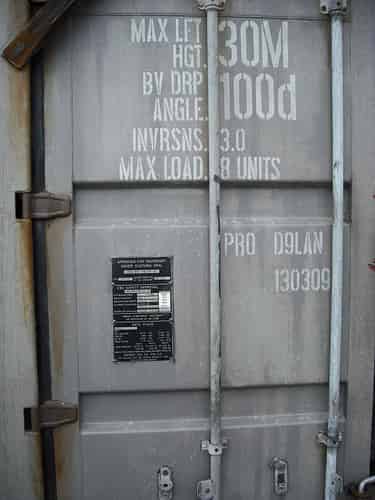 A shipping container outside the ride holds a gift shop, but the stenciling on the side subtly shows some known facts about the ride: It features a 30m high lift hill, A Beyond Vertical drop of 100 degrees, 3 inversions, a maximum loading of 8 guests per car, was codnamed Project Dylan during construction, and opened on 13/03/09.