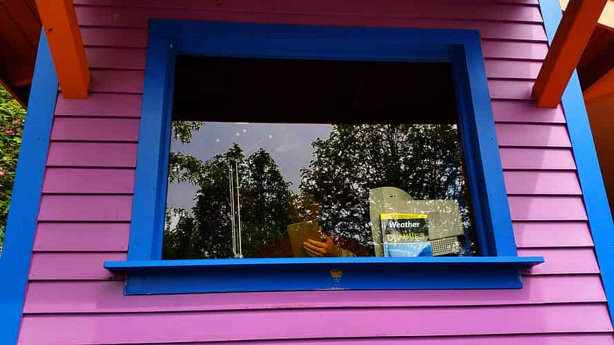 There's a bit of theming on the way in, with an animatronic meteorologist in a box.