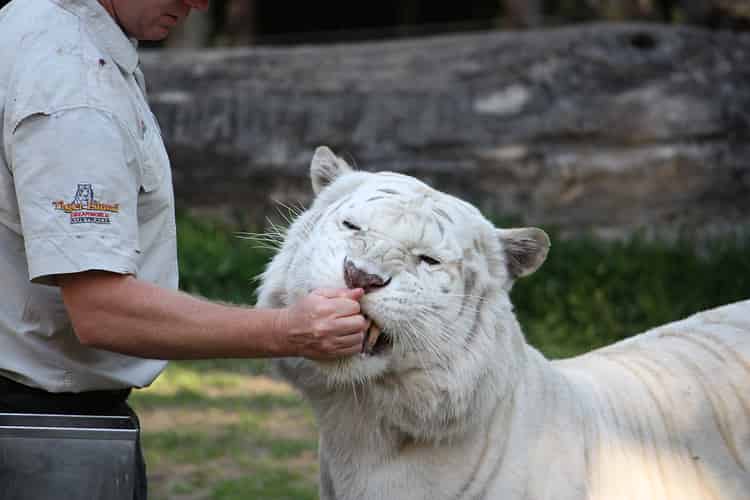 The handlers are with the tigers all day long.