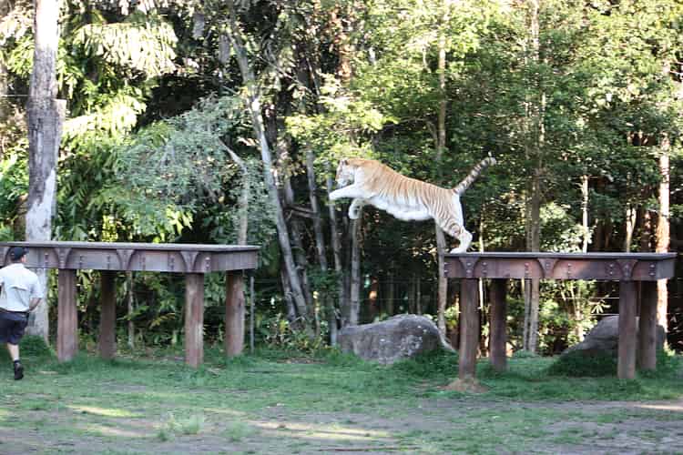 Tiger Island has a new prop to better demonstrate the leaping behavior, which was formerly done between two logs to the right.