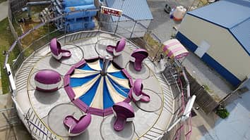 As you can see, tilt a whirls work by having people seated off centre on each circle, which creates some unpredictable ride movements.