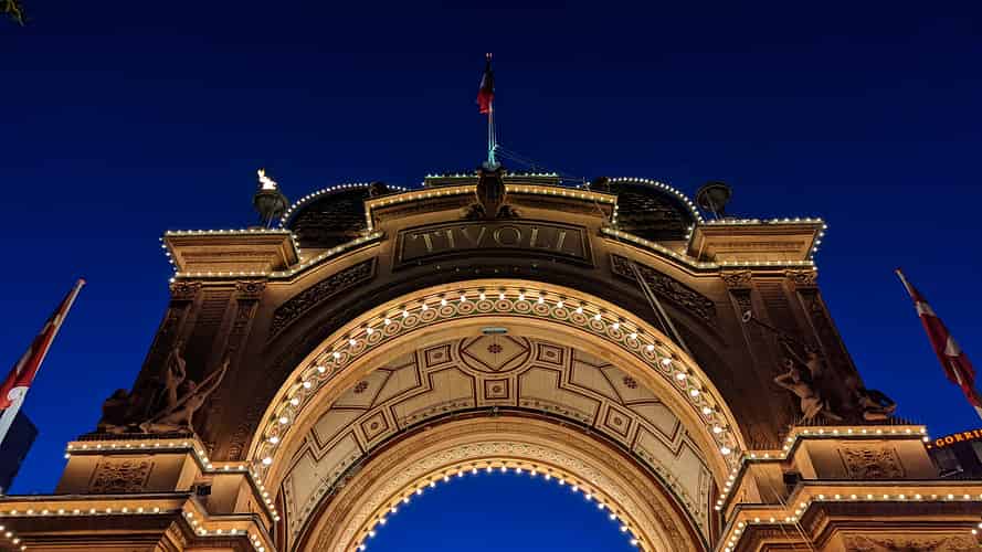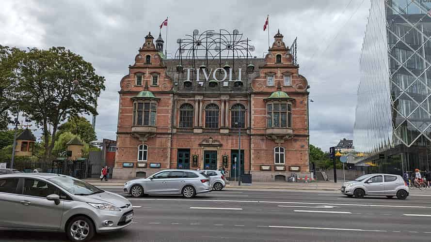 The Tivoli Concert Hall, with a rather patriotic display of Danish flags.
