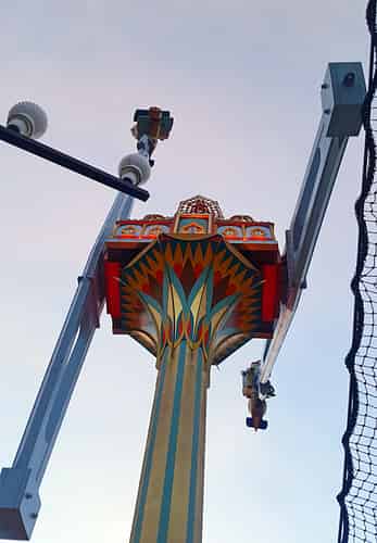 From Italian manufacturer Techincal Park, it is the only example of a "Flying Fury" ride, with planes that spin and roll at the end of two giant arms.