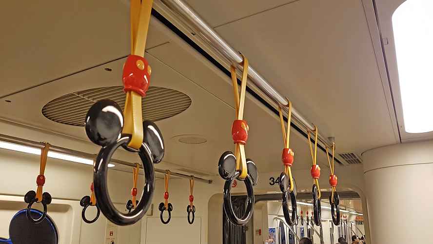 Hand straps onboard the monorail.