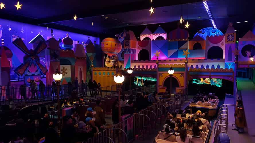 The ride is themed like a happy voyage around the world.