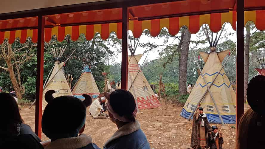 Part of the ride passes a few Western themed sets, like this Native American village.